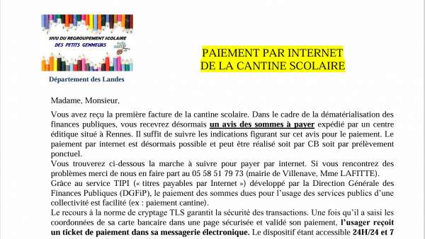 Les repas servis aux élèves sont confectionnés sur site pour les communes de Carcen et Saint Yaguen et élaborés par l'EHPAD de Rion des Landes pour les communes de Beylongue et Villenave.