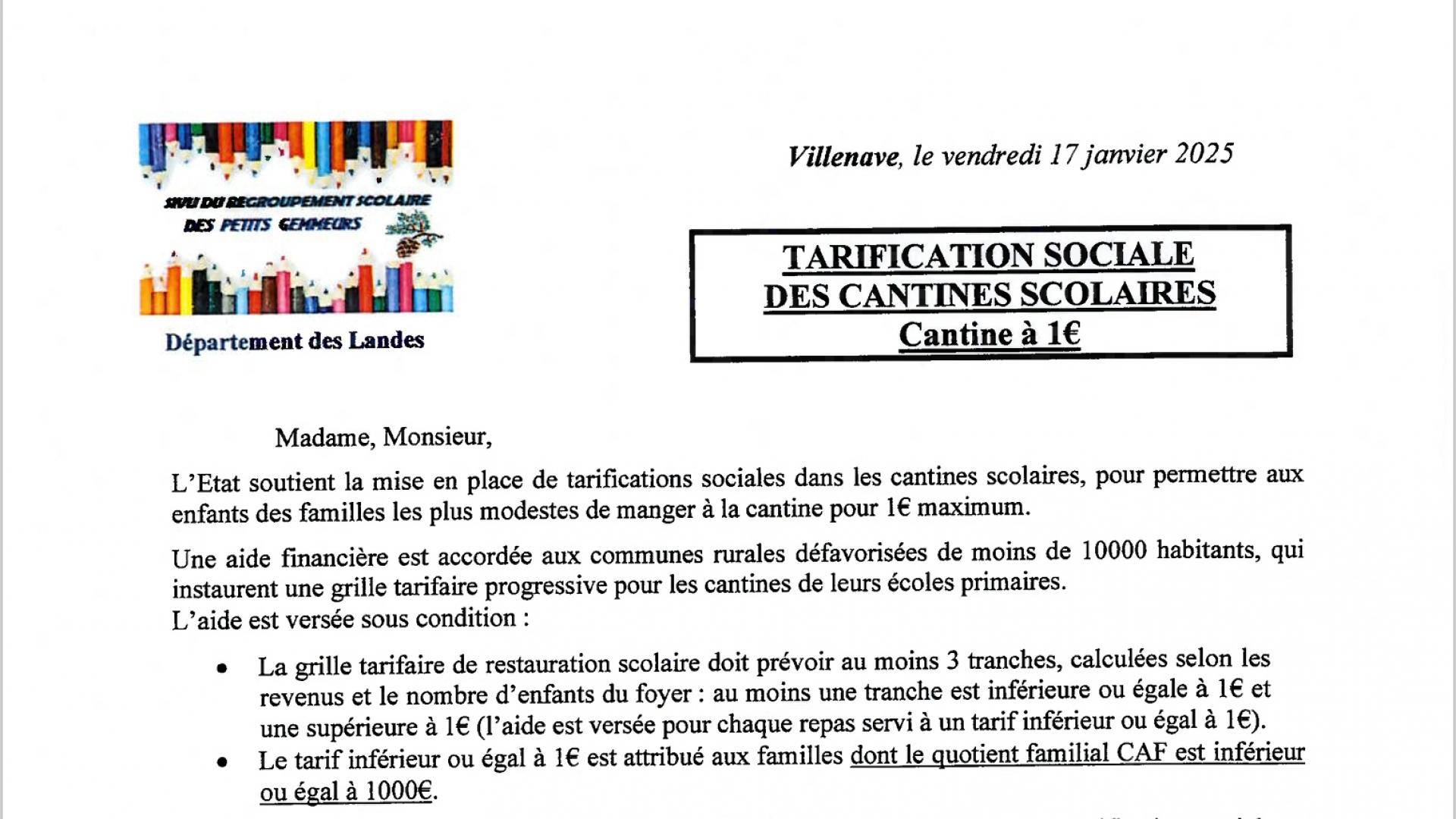 Tarification sociale des cantines scolaires